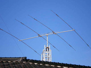 DXに関しては、11mの高さの水平短縮DPより、 格段に聞こえが良いです。 キャパシティーハットとヘリカル巻きをエレメントに つかっています。 |